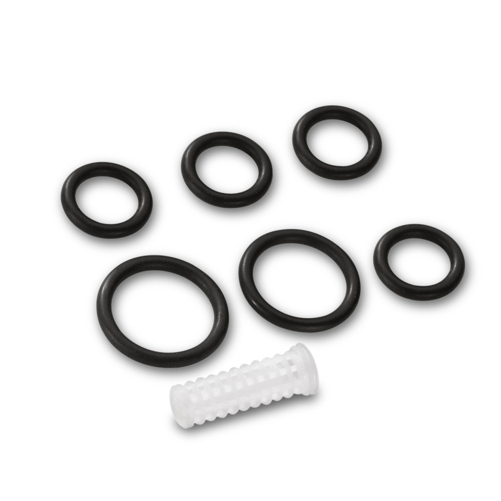 O-ring set inclusief 6 O-ringen. 4 x 10,8 mm x 2,6 mm, 1 x 15,9 mm x 2,6 mm, 1 x 17,1 mm x 2,6 mm). Inclusief 1 filter voor sproeiers.
