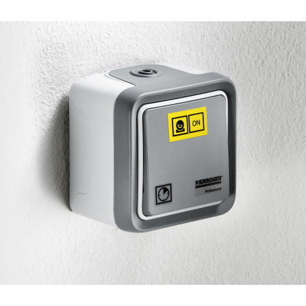 Gebruikersvriendelijke afstandsbediening voor stationaire hogedrukreinigers. Met wipschakelaar, ISO-behuizing voor wandmontage en bevestigingsmaterialen.