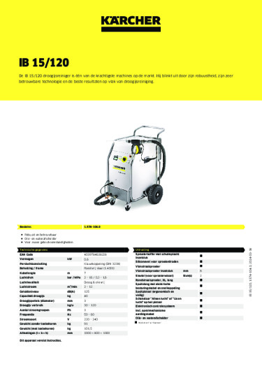 De Ice Blaster IB 15/120 is krachtig, robuust en uiterst betrouwbaar. De intelligente, gedetailleerde oplossingen zoals de houder voor de koffer, het legen van het ijs, de bevestigingsbeugel en de opbergvakken dragen ook bij aan zijn positieve totaalindruk, verhogen het gebruikscomfort en maken de droogijsreiniging nog aangenamer. En technisch gezien ligt de oplossing in het detail. Daarom hebben we de luchtstroom in de machine, de slang, het spuitpistool en het mondstuk aanzienlijk verbeterd. Het resultaat: uitstekende reinigingsprestaties. Ondanks zijn grootte is de IB 15/120 zeer mobiel en kan hij gemakkelijk door één persoon worden gedragen, bijvoorbeeld over trappen. Kortom: droogijsstralen op zijn best!