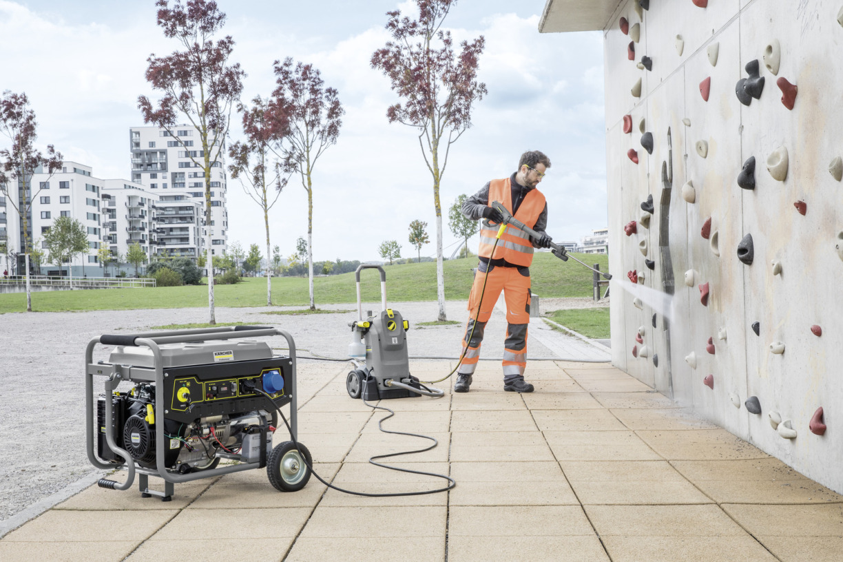 Aangedreven door een krachtige en betrouwbare 4-takt benzinemotor (EU STAGE V), garandeert onze synchrone generator PGG 6/1 met 5 kW een onafhankelijke stroomvoorziening op bouwwerven, in de landbouw of in stedelijke gebieden. De grote 25 liter tank maakt lange toepassingen mogelijk tot 10 uur (bij vol vermogen tot 6,5 uur), terwijl een robuust stalen frame, lekvrije banden en een inklapbare handgreep zorgen voor maximale mobiliteit, ook in moeilijke omstandigheden. Dankzij de 2 geaarde stopcontacten en 1 blauwe caravanaansluiting (beide AC, 1-fase) met automatische spanningsregelaar (AVR), heeft de machine voldoende aansluitmogelijkheden voor de bediening van verschillende gereedschappen en apparatuur. De geavanceerde veiligheidstechnologie met overbelasting- en olietekortbeveiliging beschermt de gebruiksvriendelijke machine tegen beschadiging.