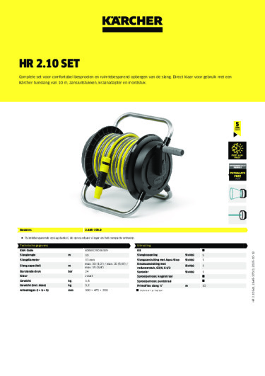 Mobiel gebruik ontmoet compacte opslag: de slanghaspel zorgt voor een gemakkelijke bewatering en ruimtebesparende opslag van de tuinslang. De complete set bestaat uit een tuinslang van 10 m, aansluitstukken, kraanadapters en een sproeier. Met behulp van de vrijlopende hendel kan de tuinslang moeiteloos worden opgerold en netjes en zorgvuldig worden opgeborgen, zonder knikken of vervelende klitten. Het product scoort ook punten vanwege het compacte ontwerp, de ergonomische handgreep voor comfortabel transport en de hoge stabiliteit dankzij een laag zwaartepunt. Bovendien is het product UV- en vorstbestendig. Kärcher-slangopslagapparaten worden gekenmerkt door hun robuustheid en lange levensduur en worden geleverd met een fabrieksgarantie van 5 jaar. De slanghaspel wordt volledig gemonteerd geleverd.