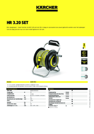 Praktische muurbeugel gecombineerd met mobiel gebruik: deze slanghaspel wordt zowel gebruikt voor het opbergen van de slang aan de muur met de meegeleverde muurbeugel als voor mobiel gebruik in de tuin. De HR 3.20 set is eenvoudig uit de houder te halen en is dankzij het ergonomische handvat comfortabel te dragen. Met behulp van de vrijlopende hendel kan de tuinslang moeiteloos worden opgerold en netjes en voorzichtig worden opgeborgen, zonder knikken of vervelende knopen. Het product scoort ook punten vanwege het compacte ontwerp en de hoge stabiliteit dankzij een laag zwaartepunt. De slanghaspel is volledig gemonteerd en direct klaar voor gebruik met 20 meter tuinslang, aansluitstukken, kraanadapter en mondstuk. Bovendien is het apparaat UV- en vorstbestendig, waardoor het duurzaam en robuust genoeg is voor dagelijks gebruik. Kärcher biedt gratis 5 jaar fabrieksgarantie na registratie.