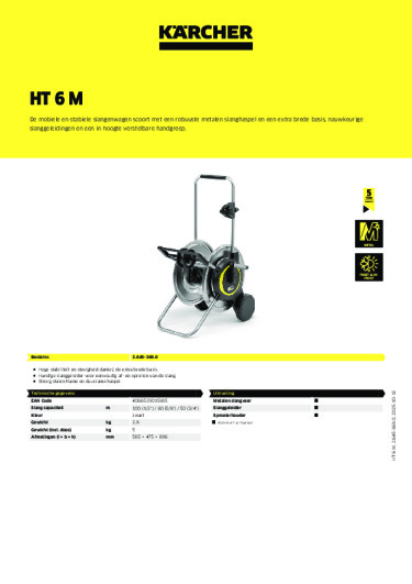 De stabiele en robuuste slangenwagen maakt het ruimtebesparend opbergen van de tuinslang mogelijk en is zeer handig in gebruik. Dankzij de ergonomische hendel en de stabiele slanggeleider kan de slang betrouwbaar worden opgerold. De robuuste metalen haspel is zelfs bestand tegen de zwaarste tuinomstandigheden. Verder scoort hij met zijn extra brede basis voor maximale stabiliteit van de slangenwagen, UV- en vorstbestendigheid en een handige sproeierhouder op het handvat. Dankzij de innovatieve snelspanhendels kan de telescoopsteel gemakkelijk op de juiste hoogte worden ingesteld of helemaal naar beneden worden bewogen. Bovenal zorgt het helemaal naar beneden schuiven voor ruimtebesparende opslag. Kärcher biedt, na registratie, gratis 5 jaar fabrieksgarantie. De slangenwagen wordt volledig gemonteerd geleverd.