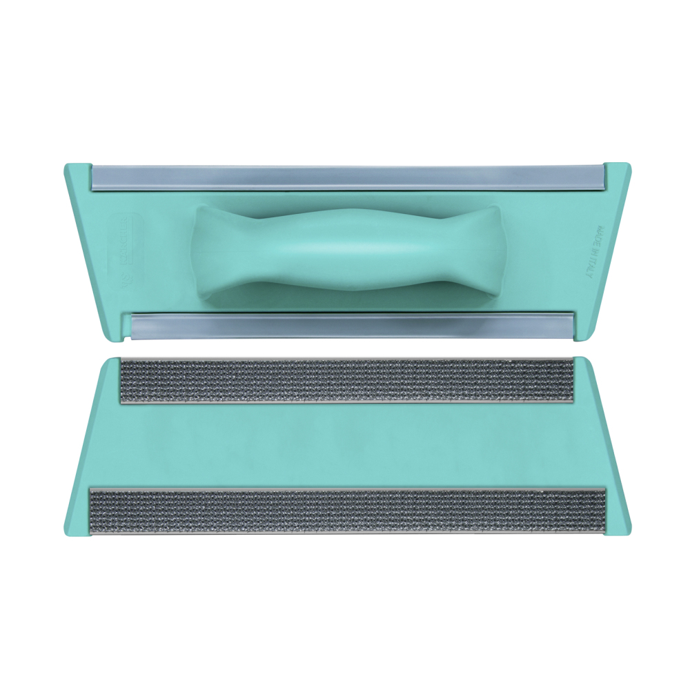 Met ergonomische handgreep voor moeiteloos reinigen en ideaal voor efficiënte reiniging van zowel verticale als horizontale oppervlakken: de handpadhouder voor 30 cm lange microvezelhoezen met klittenband van Kärcher. In vergelijking met doeken hebben de houder en de hoes een aanzienlijk groter steunoppervlak, wat de productiviteit tijdens het reinigen aanzienlijk verhoogt.