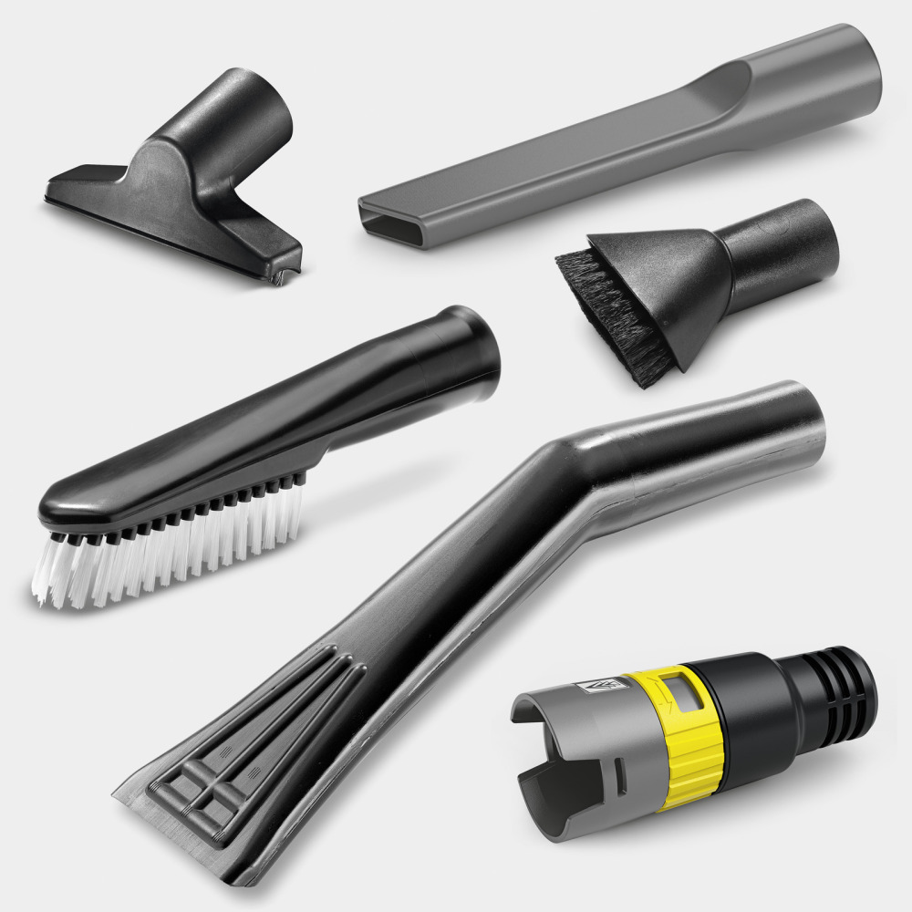 De NT 22/1 Ap Te Adv L nat- en droogzuiger van Kärcher is perfect afgestemd op de eisen van de vakman, maar is ook geschikt voor het reinigen van gebouwen, het interieur van voertuigen en vele andere commerciële toepassingen. De stofzuiger verwerkt stof en grof vuil met een hoge en constante zuigkracht. Ook vloeistoffen kan hij zonder problemen aan, dankzij het PES patroonfilter dat ongevoelig is voor vocht. Het slimme ontwerp met de in de kop van het apparaat geïntegreerde zuigslangaansluiting maakt het mogelijk de capaciteit van het reservoir volledig te benutten, en het lage gewicht maakt moeiteloos transport mogelijk. De multifunctionele stofzuiger is eenvoudig te bedienen en biedt een efficiënte, halfautomatische reiniging van de Ap-filter en een apparaataansluiting met automatische in- en uitschakeling voor elektrisch gereedschap. De bochten en de zuigslang zijn bovendien elektrisch geleidend ter bescherming tegen elektrostatische ontladingen. Het autoreinigingsmondstuk, het bekledingsmondstuk, het plintenzuigmondstuk, de zuigborstel en de multifunctionele borstel vormen eveneens een omvangrijk toebehorenpakket.