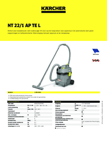 Reinigingsmiddel Nat-en droogzuiger NT 22/1 Ap Te L