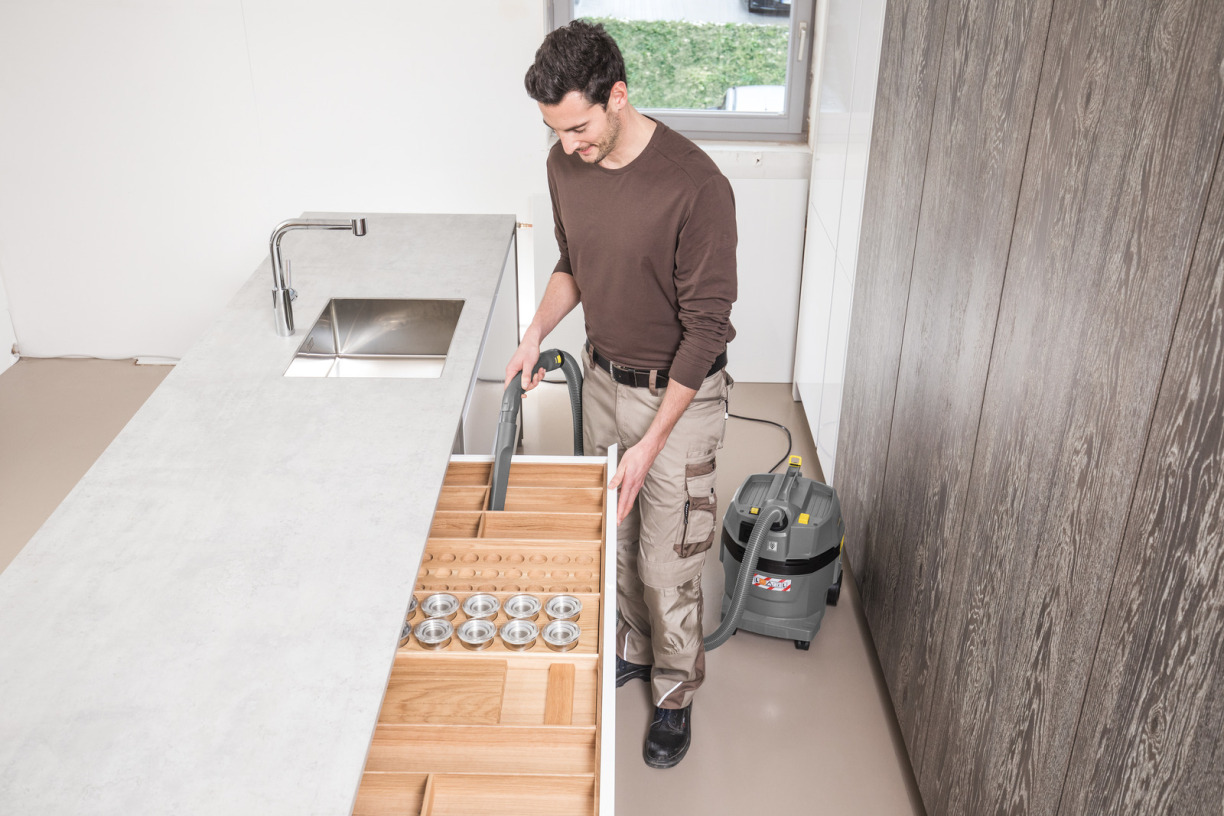 Perfect voor klusbedrijven: stof-/waterzuiger NT 22/1 Ap met stopcontact voor apparatuur met automatische start, groot zuigvermogen en halfautomatische filterreiniging. Compact apparaat uit de instapklasse.