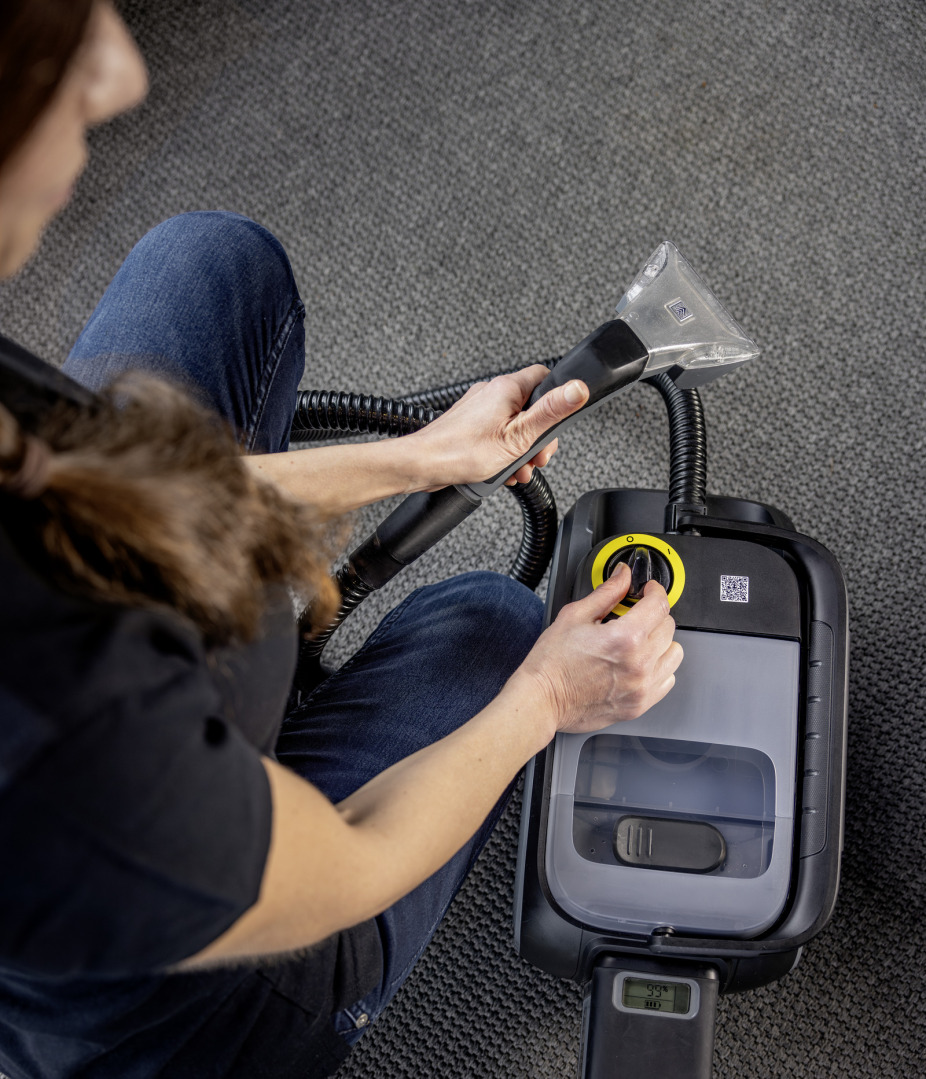 Robuust, duurzaam en krachtig met snoerloze flexibiliteit: onze Puzzi 2/1 Bp accu-sproei-extractiemachine. Deze draagbare accu-aangedreven sproei extractiemachine kan ook worden gebruikt voor vlekkenreiniging en vlekverwijdering, waardoor verse of ingedroogde vlekken op textiel zoals gestoffeerde stoelen, banken, autostoelen en nog veel meer kinderspel worden. De Puzzi 2/1 Bp verwijdert alle vlekken in een mum van tijd dankzij zijn uitstekende zuigprestaties, die ook zorgen voor snelle droogtijden. Dankzij zijn compacte ontwerp, lage gewicht en ergonomische draaggreep is de machine gemakkelijk met één hand te dragen. Voor de beste vlekverwijderingsresultaten wordt de reinigingsoplossing onder druk gezet en diep in de textielvezels gespoten voordat deze samen met het losgemaakte vuil wordt opgezogen. Standaard meegeleverd: bekledingszuigmond, sproei-/zuigslang, aparte containers voor schoon en vuil water en geïntegreerde accessoire-opbergruimte. Houd er bij het bestellen van deze machineversie rekening mee dat de krachtige 36 V Kärcher Battery Power+ accu en de bijbehorende snellader apart moeten worden besteld.
