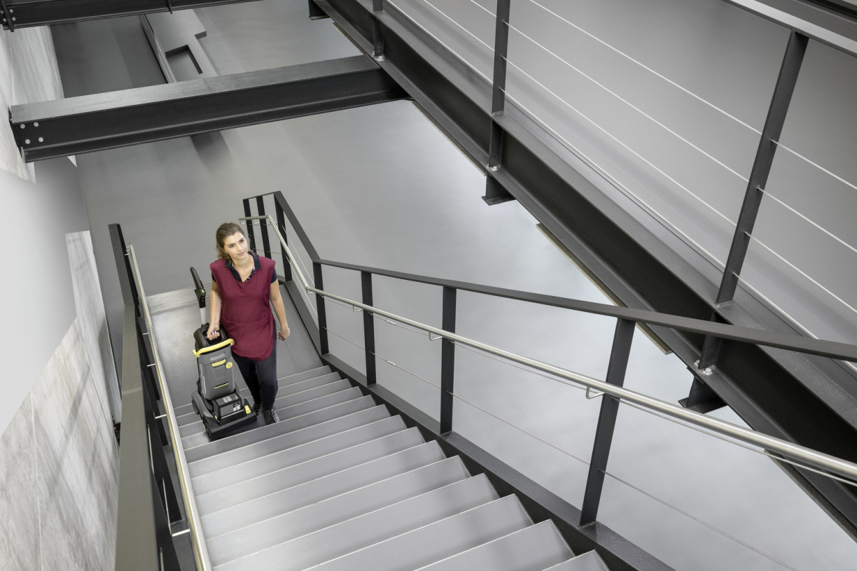 Reinigen als met de hand, maar dan veel beter: dankzij de compacte vorm, het zeer lage gewicht van 14 kilogram en de duurzame lithium-ionaccu met een looptijd van ongeveer 30 minuten is onze schrobzuigmachine BR 30/4 C Bp op accu een echt alternatief voor handmatige reiniging van harde ondergronden tot 200 m². De contactdruk, die ruim 10 keer hoger is dan een conventionele mop, en een rollersnelheid van rond de 1500 toeren garanderen ook aanzienlijk betere reinigingsresultaten. Het afzuigen is zowel voorwaarts als achterwaarts mogelijk. Bij bijzonder hardnekkige vervuiling kunnen de zuiglippen ook omhoog worden bewogen om de inwerktijd van de reinigingsoplossing te verlengen. Wat direct na het reinigen overblijft zijn schone en vooral droge vloeren. Het zeer mobiele, snoerloze apparaat is ideaal voor het reinigen van vloeren in kleine winkels, restaurants, benzinestations, supermarkten, sanitaire ruimtes, keukens of als aanvulling op bestaande grotere schrobmachines.
