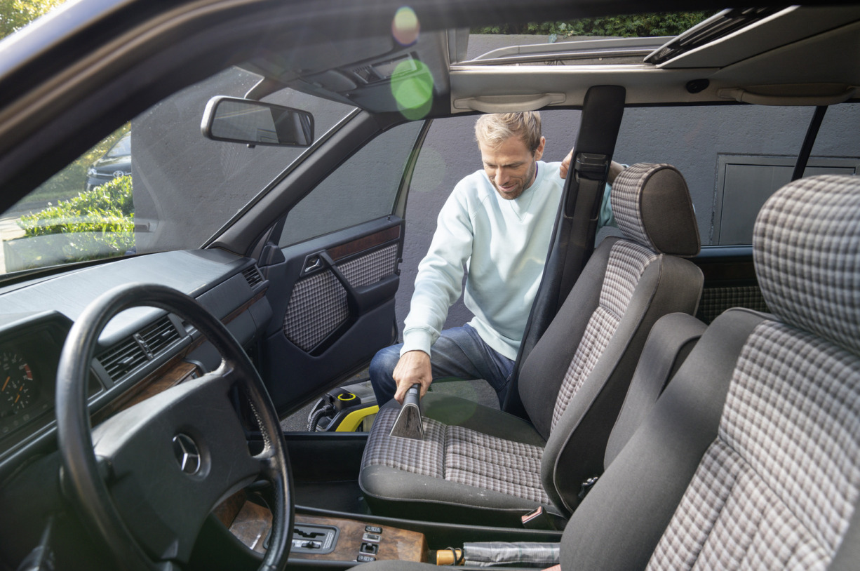 Vezeldiepe reiniging met maximale bewegingsvrijheid: de SE 3-18 Compact Battery Set sproei-extractiereiniger reinigt textieloppervlakken grondig en zonder resten. Dankzij het compacte ontwerp is het apparaat niet alleen handig, maar kan het ook worden gebruikt als er geen stopcontact in de buurt is, dankzij de 18 V Kärcher Battery Power-batterij. Hierdoor kan het interieur van het voertuig eenvoudig en efficiënt worden gereinigd. Zo verwijdert u snel vuil van autostoelen, vloermatten en de kofferbak, maar ook van tuinmeubelen en stoffen zetels – net zo krachtig als de sproei-extractiereinigers met kabel. De lange en flexibele zuigslang met reinigingsmiddelenslang aan de binnenkant garandeert bovendien veel gemak en flexibiliteit, ook op moeilijk toegankelijke plaatsen. Ook na het reinigen overtuigt de sproei-extractiereiniger SE 3-18 met zijn hygiënische spoelfunctie, die vuil van het apparaat en de slang verwijdert en zo de vorming van bacteriën en geuren voorkomt. Helemaal in lijn met het motto 'schone wagen, schoon reinigingsapparaat'. 18V-2,5Ah batterij en lader inbegrepen in deze versie.