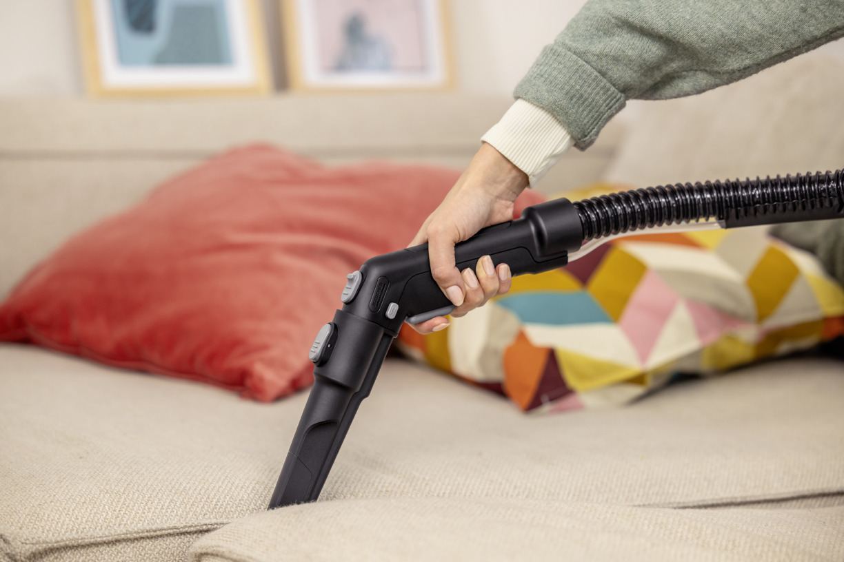 Met het handige plintenzuigmondstuk is er voor alle Kärcher sproei-extractiereinigers uit de series SE 4, SE 5 en SE 6 een praktisch accessoire voor sproei-extractie op moeilijk bereikbare plaatsen en in smalle ruimtes. Nog comfortabeler en moeiteloos worden de beste reinigingsresultaten bereikt op gestoffeerde meubels en in de auto. Het smalle mondstuk spuit de reinigingsoplossing met druk diep in de vezels en zuigt deze samen met het losgemaakte vuil weg. Vuil en geurtjes worden effectief verwijderd.