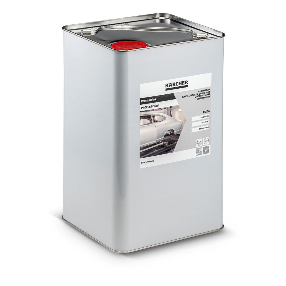 De PressurePro Wax Remover RM 36 van Kärcher bereidt oppervlakken optimaal voor op schilderen, primen en coaten. De oplosmiddelhoudende reiniger verwijdert betrouwbaar op was gebaseerde conserveringsmiddelen, beschermende wasfilms, evenals vet, olie, smeermiddelen, hars, minerale verontreinigingen en lijmen, zelfs bij een lage dosering. De PressurePro Wax Remover RM 36 is vrij van gehalogeneerde koolwaterstoffen, gemakkelijk af te spoelen en perfect voor gebruik met hogedrukreinigers, waardoor het ideaal is voor toepassingen in industrie en handel.